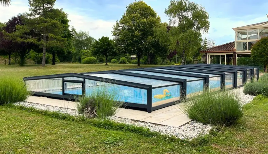 Les abris de piscine sur-mesure sans rails au sol qui révèlent le charme de votre jardin