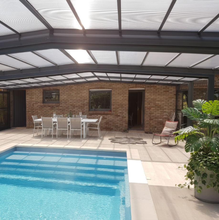 - Sur-mesure : Sokool conçoit des abris de piscine sur mesure, adaptés aux dimensions de votre bassin et de ses abords. Nous pouvons imaginer des configurations avec différentes hauteurs, adossé à une façade ou même des dimensions XXL.