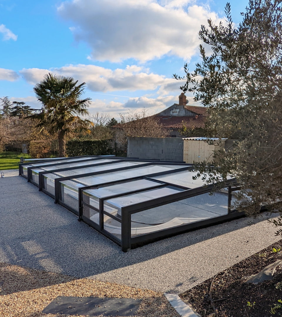 Une réalisation dont l’on vous partage les coulisses chez Paul à Ronce-les-Bains, propriétaire d’une d’un abri de piscine bas Kandis 40 Thermo. La particularité de cet abris ? Il est composé de seulement deux grand éléments installés dans la longueur de la piscine. Il est également doté d’une trappe latérale…