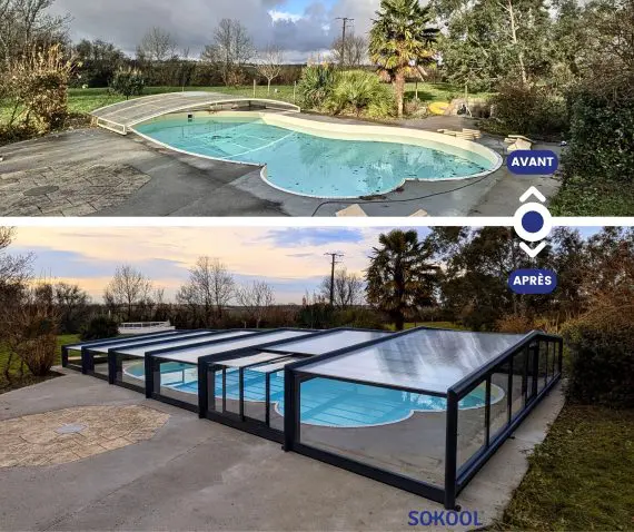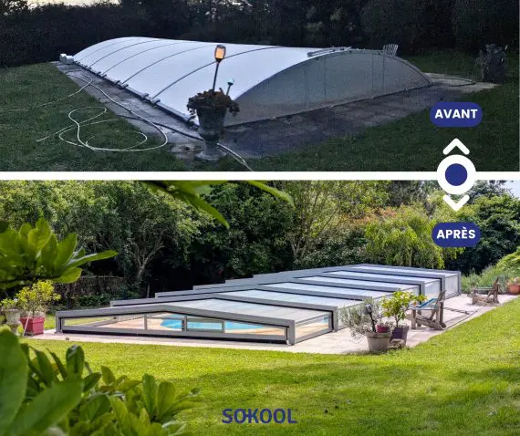 Votre abri de piscine présente des signes de casse ou d’usure ? Vous souhaitez qu’un expert intervienne afin que vous puissiez de nouveau pleinement en profiter ? Sokool répare et rénove tout type d’abri de piscines angulaires de toute marque. Dans un premier temps, nous établissons un diagnostic des dégâts de votre abri de piscine grâce à des photos, ou au déplacement d’un technicien sur place si nécessaire, si les photos ne nous permettent pas d’établir un constat. Suite à cette expertise, nous vous conseillons selon vos besoins et vos attentes, et établissons un devis incluant les pièces à remplacer pour la rénovation de votre abri. Si nous constatons que les dégâts sont trop importants, nous vous proposerons un remplacement d’abri. Cette prestation comprendra le recyclage de votre abri actuel, son démontage, son évacuation, et la mise en œuvre du nouvel abri. Vous n’aurez rien à faire, nous nous chargeons de tout ! Un doute ? Envoyez nous des photos de votre abri et des dégâts afin d’obtenir une expertise technique personnalisée. Nous vous conseillerons sur les changements à effectuer afin de réparer au mieux votre abri, changer les pièces ou le remplacer. Vous pouvez également consulter notre article vous donnant des conseils : quand et comment donner une seconde vie à son abri, ou bien totalement le changer ?