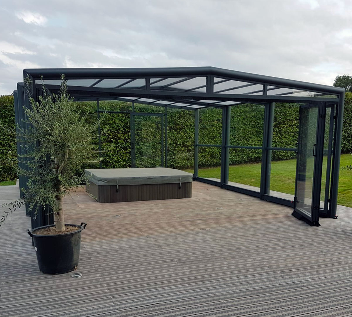 Les spas sont aujourd’hui devenus une bonne alternative aux piscines, voire un complément à la piscine traditionnelle, pour une baignade en toute intimité dans votre « jacuzzi ». Les différents modèles d’abris de spa offrent un lieu de détente totale, quel que soit le temps à l’extérieur, et ce toute l’année : hiver comme été, sous la pluie comme sous le soleil. Votre équipement de spa bénéficie alors d’une excellente protection, simplifiant ainsi l’entretien de cette structure de nage. C’est également la solution idéale pour disposer d’un réchauffement maximal de l’air et de l’eau, et ce dès les premiers rayons de soleil, même l’hiver. La détente est ainsi garantie, tout au long de l’année, grâce à votre futur abri de spa. Sokool vous propose toute une gamme d’abris de spa parfaitement adaptée à votre spa et à votre espace de baignade, sans oublier les aspects modulables et sur mesure de leur toiture. Notre gamme d’abris de spa ont une structure de forme carrée ou ronde, conservant la vue sur votre environnement, notamment votre espace jardin, durant toute l’année ! Qu’il s’agisse d’une structure d’abri de spa en dôme, ou bien d’un abri de spa en rotonde, les atouts de nos modèles de la gamme des abris de spa sont les mêmes pour tous : vous offrir une simplicité d’utilisation et un plus grand confort de nage. Ces abris de spa s’avèrent également être une solution idéale pour sécuriser votre bassin de spa ou de piscine, tout en prolongeant la période d’utilisation de votre spa extérieur, que ce spa soit sur les lames de votre terrasse ou dans votre jardin.